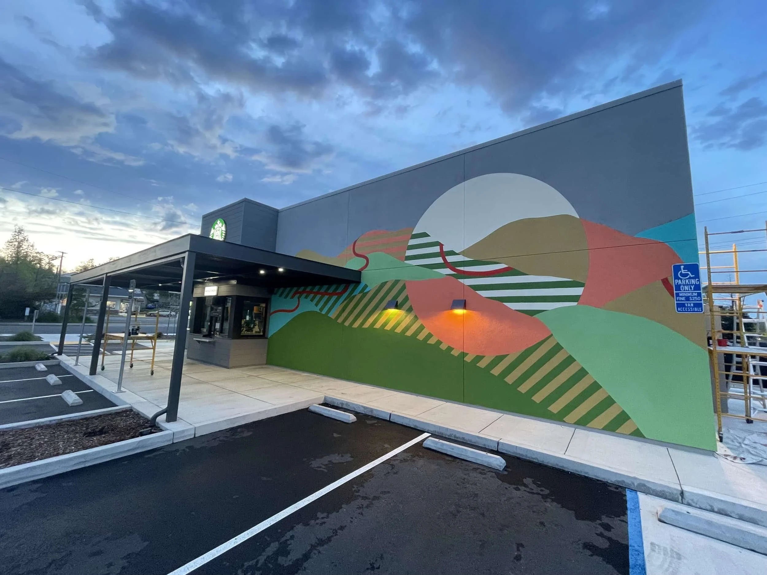 I started working with Starbucks in 2013. The Starbucks Art Program that catalogues branding, commissioned art pieces, and design files began around the same time they called me to repaint the original cigar band logo at the flagship store in Pike Place Market. Since establishing trust with the Seattle design department, I’ve been invited to contribute to high profile new build projects as well as established neighborhood coffee shops. Through the seasons of design changes and upgrades, we have collaborated with artists such as Jordan Kay, Gabe Armagost, Thom Head, Paige Pettibon, and Alex Aranovich on over 40 stores in Washington, Oregon, California, Idaho, and Nevada.